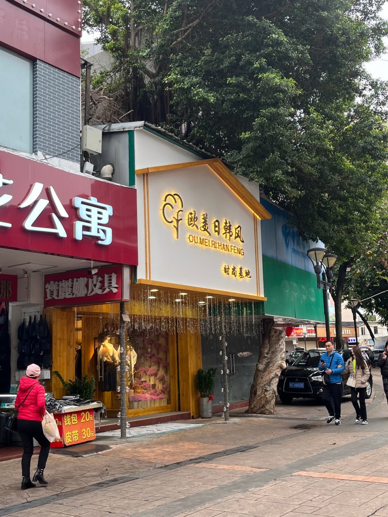 On my first day here, I entered a little boutique on a main shopping street called Ou Mei Ri Han Feng. Unlike a lot of the clothing I had been seeing around, the clothing there was high quality and displayed neatly in pre-made outfits (you didn’t have to buy them like that though). The lady running the shop, A, was very nice to me. She didn’t speak much English because she hadn’t used it since she was in school (10 years ago) so we chatted in Chinese. I explained how I was here to study and celebrate the new year and she thought that was very cool! Then her younger sister, Lan, came down and the three of us talked about different things to do and places to go on Chinese new year day. I sat with them at the front for a decent amount of time where they offered me warm water and peanuts! I added their Wechats and they said how lucky they were to meet me and make a new friend! The next day, I went back to the boutique and bought myself a cute sweater and a pair of pink corduroy pants ~ it is the BEST feeling to put on pants in a store and they fit you without having to find an alternative “petite” or “short” version!! A and Lan were very happy to see us again! Glad for their friendliness and care in this unfamiliar city.