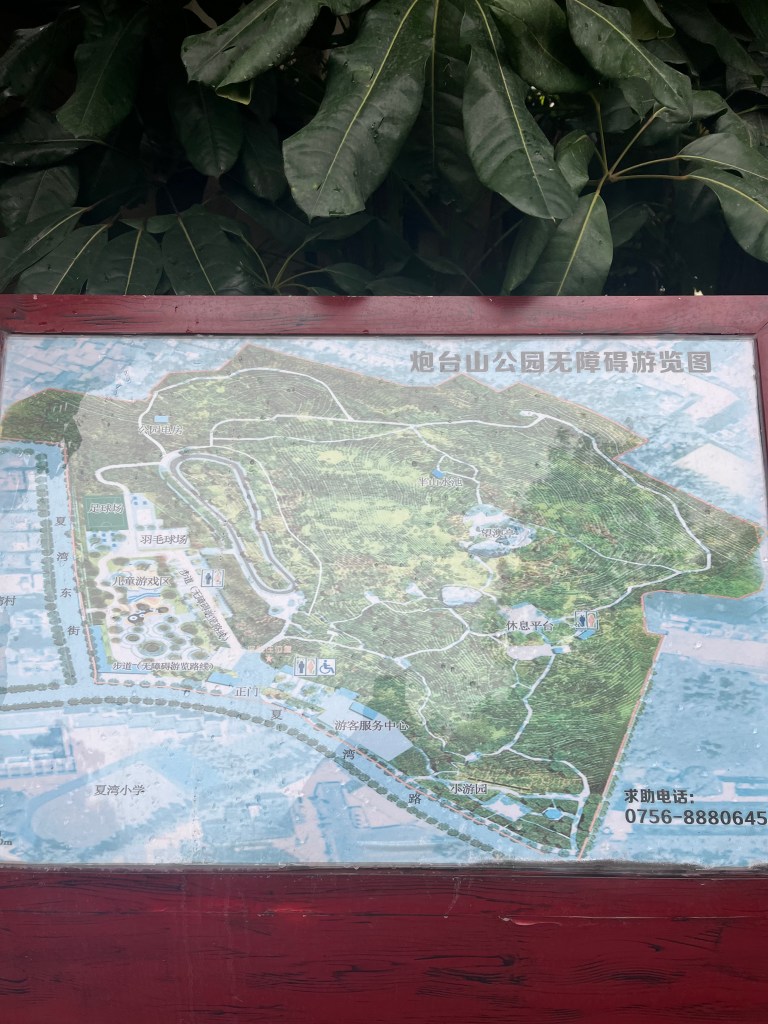 Today was my third day in Zhuhai. I woke up around 7:00 this morning and feel pretty adjusted already to the time zone difference. I visited 炮台山公园 (Pao Tai Shan Park) about a 20 minute walk west of the hotel. I spent 30 minutes in the park, doing a loop on some of its many paths, and barely walked its entirety. There is a pavilion up a hill in the park with a panoramic view of Zhuhai and Macao that I climbed up to. The park is dense with trees and greenery and was like a whole different world from the city we are living in. There were Chinese new year decorations in the park as well, lanterns and signs to celebrate the holiday! It was a relaxing and beautiful little hike to get some fresh air. I might go back in the next couple days to take in the rest of the park!